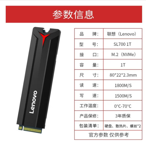 聯(lián)想(Lenovo) 1TB SSD固態(tài)硬盤 M.2接口(NVMe協(xié)議) SL700拯救者系列 2280板型