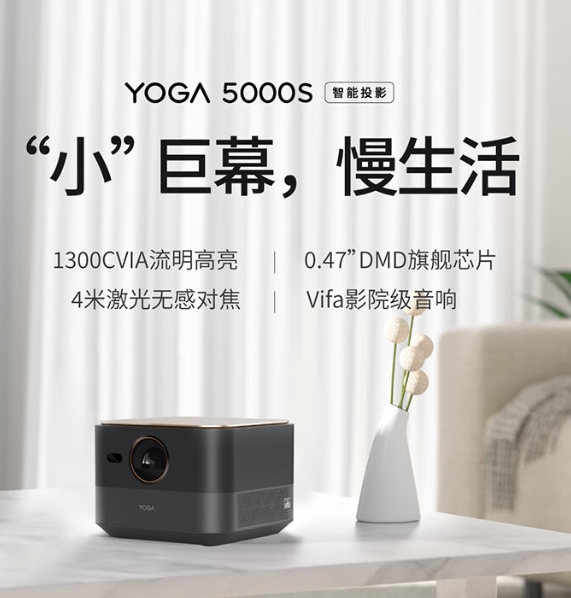 聯(lián)想智能投影儀Yoga5000S家用投影機(jī)2000流明Vifa影院級(jí)音箱0.47DMD 黑色
