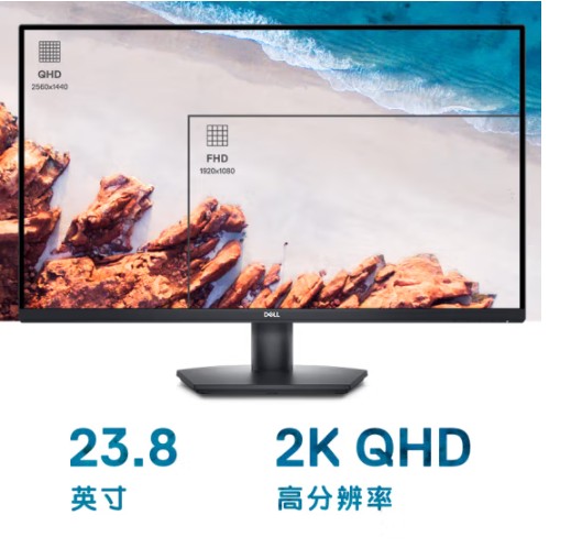 戴爾(DELL)23.8英寸 辦公顯示器 2K IPS 75Hz 4ms 防藍(lán)光 FreeSync 支持壁掛 電腦顯示屏 SE2423DS